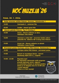 Noć muzeja, naša najveća muzejska manifestacija, održat će se širom Hrvatske, u petak, 30. siječnja 2026. godine. Ovoj manifestaciji pridružuje se i POU Vrbovec nizom događanja na tri lokacije. U Likovnoj galeriji Vrbovec bit će održana radionica za djecu pod vodstvom Ane Dobraš te radionica za odrasle koju će voditi Ivana Ožetski. U 18:00 sati bit će otvorena izložba radova polaznika radionica Gradskog društva Crvenog križa pod nazivom Likovnost u zreloj dobi.