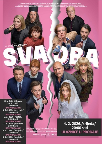Domaća komedija Svadba stiže u naše kino u nekoliko termina. U ovom filmu glavne uloge glume Rene Bitorajac, Dragan Bjelogrlić, Anđelka Stević Žugić, Dejan Aćimović, Srđan Žika Todorović i Linda Begonja. Priča prati Miljenka, uspješnog i utjecajnog hrvatskog poduzetnika, na dan svoga pedesetog rođendana koji se suočava s brutalnom istinom – na sjednici nadzornog odbora doznaje da se njegovo poslovno carstvo nalazi na rubu sloma.