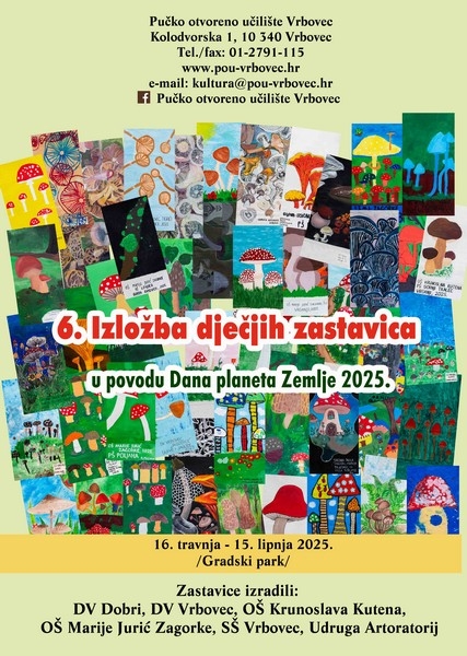 U povodu Dana planeta Zemlje, 22. travnja, u srijedu, 16. travnja 2025. godine u 10:00 sati u Gradskom parku bit će otvorena izložba zastavica s motivima gljiva. Zastaice su izradila djeca DV Vrbovec, DV, Dobri, OŠ Krunoslava Kutena, OŠ Marije Jurić Zagorke, Srednje škole Vrbovec te polaznici likovnih programa Udruge Artoratorij. Izrađeno je 25 zastavica na temu svijeta gljiva, a podsjećaju nas da moramo čuvati bioraznolikost svijeta u kojem živimo.