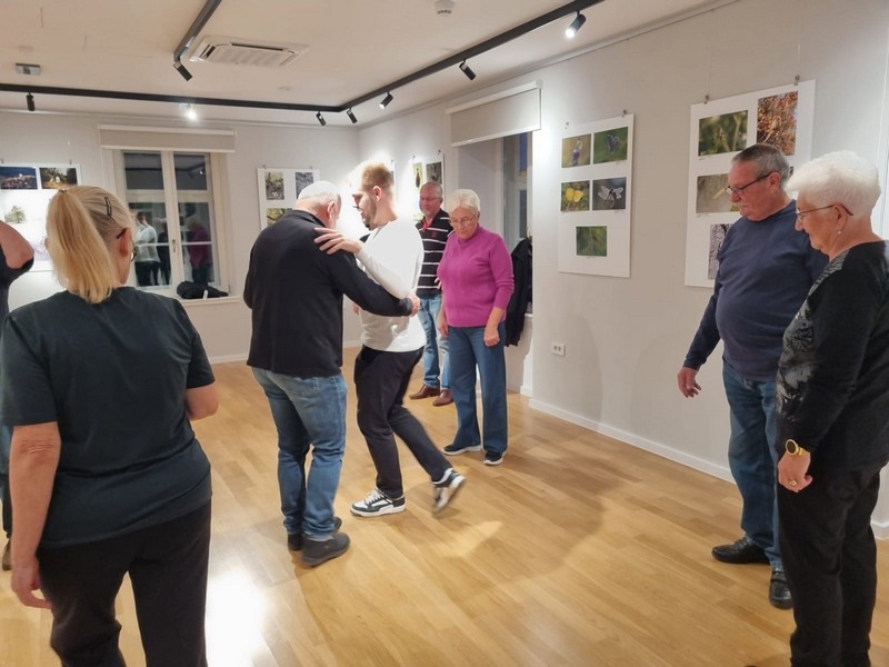 Upravo je završila plesna radionica Budi u ritmu - otkrij magiju plesa pod vodstvom Božidara Leščića. Nakon zagrijavanja polaznici su naučili osnove salse te se prepustili latino ritmovima. Radionica, posljednja u nizu događanja održanih u sklopu 19. Tjedna cjeloživotnog učenja, održana je u Likovnoj galeriji Vrbovec.