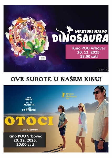 Ove subote u našem kinu pogledajte od 18:00 sati crtani film Avanture malog dinosaura. Mali dinosaur kreće u avanturu kako bi spasio svoje roditelje koji su nestali pod misterioznim okolnostima. Uz čarobnjaka i dva neobična znanstvenika, usput susreće fantastična stvorenja i nevjerojatna mjesta.