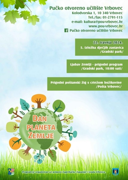 Na Dan planeta Zemlje, 22. travnja 2024. godine, u gradskom parku bit će održan prigodan program pod nazivom Ljubav Zemlji. U prigodnom glazbeno-scenskom programu sudjelovat će djeca Dječjeg vrtića Dobri i Dječjeg vrtića Vrbovec te učenici OŠ Krunoslava Kutena. Bit će izloženo i 27 prigodnih zastavica s 54 rada na 5. Izložbi dječjih zastavica temu proljetnica koje su oslikali predškolci DV Vrbovec i DV Dobri, učenici OŠ Krunoslava Kutena, OŠ Marije Jurić Zagorke te Srednje škole Vrbovec kao i polaznici slikarske radionice Udruge Artoratorij.