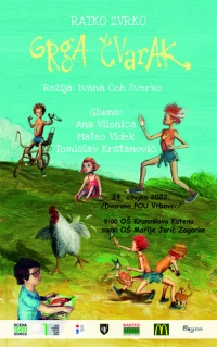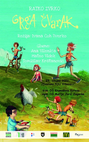 U predstavi Grga Čvarak glume Ana Vilenica, Mateo Videk i Tomislav Krstanović. Predstavu će gledati učenici OŠ K. Kutena i OŠ Marije Jurić Zagorke, ali ima karata i u slobodnoj prodaji koje se mogu kupiti na blagajni po cijeni od 30,00 kuna.
