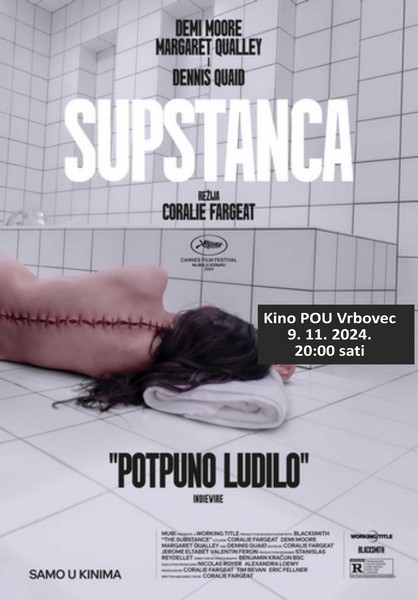 Kontraverzni film Supstanca, za koji kažu da je crna horor komedija, pogledajte u našem kinu u subotu, 9. studenoga 2024. od 20:00 sati. Film prati Elisabeth Sparkle, nekadašnju filmsku zvijezdu, koja je produkcije namijenjene velikom ekranu zamijenila proizvodnjom videa za tjelovježbu. No, iako izgleda izvrsno, s 50 godina sve joj se više vrata zatvara. Igrom slučaja do nje dolazi neobičan prijedlog: tajanstveni laboratorij nudi joj uzorak Supstance, čudesne tvari koja će joj pomoći da probudi mlađu, ljepšu i savršeniju verziju sebe. No sve dolazi sa cijenom, a ova će biti prilično visoka.