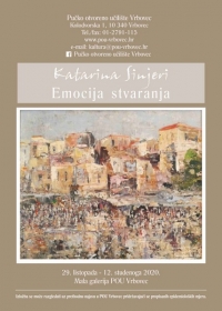 Izložba slika Emocija stvaranja Katarine Sinjeri bit će otvorena za javnost od sutra, 29. listopada 2020. godine u Maloj galeriji. Riječ je o uljima na platnu koje je autorica radila posljednjih sedamnaest godina. Do sada je imala devet samostalnih izložbi, a likovnu poduku dobila je u križevačkoj školi slikanja kod prof. Zorana Homena i dr. sc. Zdenka Baloga. Javnosti se ovoga puta predstavlja s devetnaest ulja na platnu s različitim pejsažima.