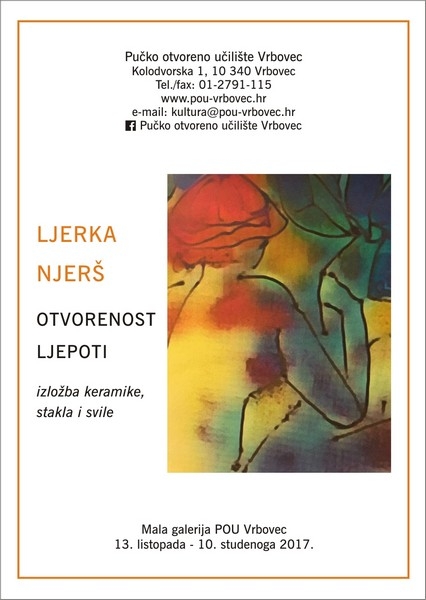 U petak, 13. listopada 2017. godine u 18:00 sati u Maloj galeriji Pučkog otvorenog učilišta Vrbovec bit će otvorena izložba keramičarke i slikarice Ljerke Njerš pod nazivom "Otvorenost ljepoti". Predstavit će se oslikanom svilom, staklom i keramikom, radovima o kojima je Iva Korbler, kustosica izložbe napisala: "Specifičnost stvaranja Ljerke Njerš je prevladavanje svih mogućih ograničenja jednog odabranog medija i materijala pa ćemo ponekad teško razabrati od prve je li pred nama slika, akvarel ili oslikana svila; crtež, akvarel ili monotipija; glina ili porculan."