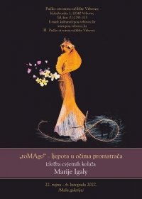 Izložbu cvjetnih kolaža Marije Igaly otvorit ćemo ovoga četvrtka, 22. rujna 2022. u 18:00 sati u našoj Maloj galeriji. "Autorski postupak transformacije prirodnih elemenata, konkretno cvijeća, u čudesne sliko-kolaže nazivamo toMAgo, a rezultati toga kreativnog procesa su čudesne antropomorfne i zoomorfne figure." - istaknula je u predgovoru izložbe Sanda Stanaćev Bajzek. Dodala je kako rastavljajući i prešajući biljke Marija Igaly u njihovoj raznolikosti uočava oblike od kojih će, polažući ih pincetom na podlogu od tkanine, slagati čudesne kompozicije. Ona tako cvijeću daruje novi jedinstveni i neponovljivi estetski vitalitet, jer simbiozom nađenog, oplođenog domišljatošću, nastaju jedinstvene forme. Prepoznatljivost ne izostaje, a dio tijela koji možda i nedostaje, nadoknađuje se maštom promatrača.
