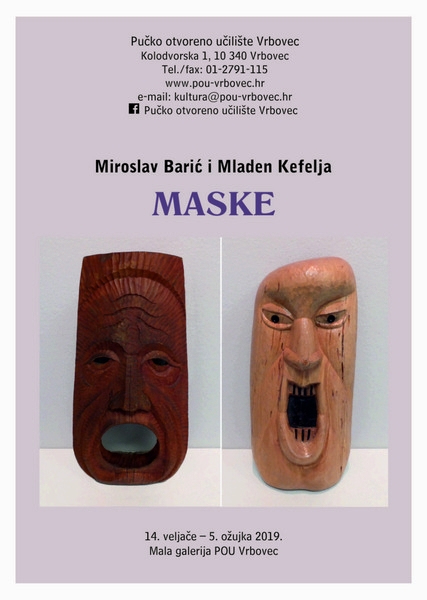 Uoči Fašnika u Maloj galeriji Pučkog otvorenog učilišta Vrbovec bit će otvorena izložba Maske Miroslava Barića i Mladena Kefelje. Vrbovečki umjetnici, jedni od osnivača Likovnog društva Vrbovec, ovom izložbom uvode nas u svijet drva i njegove ekspresivne vrijednosti oblikujući poseban svijet maski.