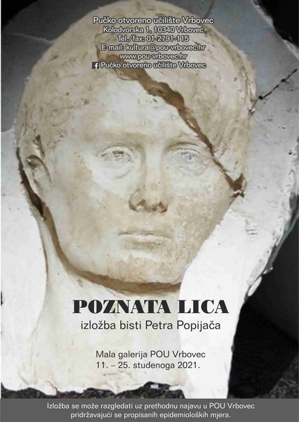 Poznata lica naziv je izložbe bisti mladog akademskog kipara Petra Popijača koja se od sutra može pogledati u našoj Maloj galeriji. Popijač se u novom ekspresivnom kiparskom ciklusu poigrava fenomenom običnih ljudi naglašava Maja Flajsig u deplijanu izložbe. Uz prepoznatljiva lica iz vrbovečke prošlosti Petra Zrinskog, Marije Jurić Zagorke, Eleonore Patačić, markiza de Piennesa, do naših donedavnih sugrađana Josipa Velebita, Josipa Buturaca, Josipa Pankretića te legendarnog Gige i njegova bicikla vidjet ćete još neka poznata vrbovečka lica.