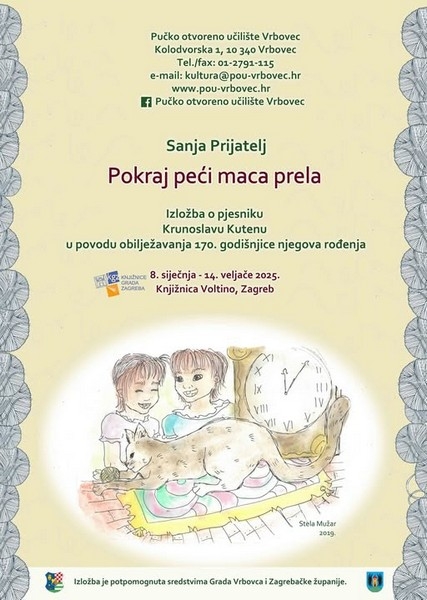 U povodu 170. obljetnice rođenja vrbovečkog pjesnika Krunoslava Kutena u Knjižnici Voltino u Zagrebu otvorena je izložba Sanje Prijatelj pod nazivom Pokraj peći maca prela. Izložba donosi biografske podatke o Kutenu s nekim novim informacijama o njegovom kratkom životu i radu, mogu se vidjeti izdanja s Kutenovim pjesmama saznati ponešto i o njegovom bratu Đuri Kutenu koji je bio prvi metodičar crtanja u nas.