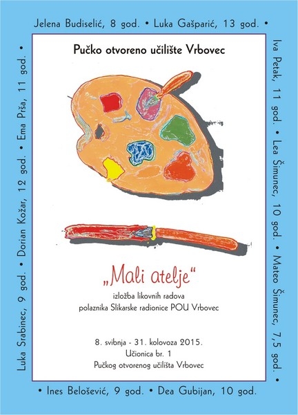 U ponedjeljak, 8. lipnja 2015. godine bit će otvorena izložba likovnih radova polaznika Slikarske radionice Pučkog otvorenog učilišta Vrbovec pod nazivom "Mali atelje". Likovno nadarena djeca su pod vodstvom akademske slikarice Ivane Ožetski vrijedno radili od rujna prošle godine te će njihovi odabrani radovi bit izloženi u predvorju dvorane Učilišta. Mladi polaznici radionice upoznali su se mogućnostima i pravilnom uporabom naizgled dobro poznatih tehnika, materijala i postupaka, poput akvarela, kolaža, olovke, tempere, tuša, ugljena, tiska te ostalih likovnih tehnike. Polaznici su istovremeno ovladali preciznim i sigurnim rukovanjem priborom i materijalom te naučili optimalno koristiti sva njihova svojstva. Usput su se dobro zabavljali i družili.