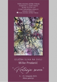 U predgovoru kataloga izložbe Maja Flajsig, povjesničarka umjetnosti je istaknula: "Prirodu svile, njezin specifičan način postojanja i potencijal za kreativno stvaralaštvo ponajbolje poznaje Milka Prodanić, umjetnica koja više od dva desetljeća stvara na svili. Koristeći gutta tehniku i tehniku akvarela, Milka Prodanić vješto se kreće podatnim nitima svile i stvara kompozicije nalik snovima. Nježnost svile koja rastače precizno nanesene boje bliske su onostranom, oniričnom spektru bivanja. Slike Milke Prodanić ponekad su apstraktne, ponekad su figurativne i pejzažne, ali uvijek obavijene velom lakoće i nježnosti." Izložba će biti otvorena do 19. listopada 2023. godine.