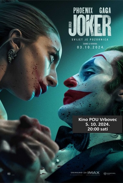 Ove subote, 5. listopada 2024. u našem kinu od 20:00 sati pogledajte triler Joker za koji je scenarij napisao Todd Phillips i Scott Silver. Riječ je o filmu u kojem ponovo gledamo Joaquina Phoenixa u ulozi Arthura Flecka aka Jokera te famoznu Lady Gagu kao Harley Quinn u glamuroznom ludilu i nastavku kultnog psihološkog trilera iz 2019. godine!