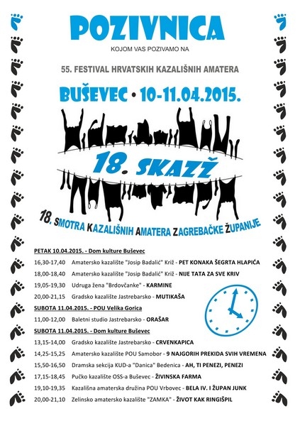 U Buševcu će u subotu, 11. travnja 2015. biti održana 18. smotra kazališnih amatera Zagrebačke županije na kojoj će nastupiti i Kazališna amaterska družina Pučkog otvorenog učilišta Vrbovec s predstavom "Bela IV. i župan Junk". Predstava „Bela IV. i župan Junk“ temelji se na povijesnim podacima o nastanku i razvoju grada Vrbovca te interpretira našu povijest na humorističan način. Poigrava se s tekstom darovnice kralja Bele IV. iz 1244. godine u kojoj se po prvi puta spominje Vrbovec kojeg kralj Bela IV. daruje županu Junku. U radnju su upletene i znamenite vrbovečke ličnosti kao što su Petar i Katarina Zrinski, Marija Jurić Zagorka, Krunoslav Kuten i drugi koji svojim dijalozima, jezičnom raznolikošću i scenskim izričajem daju razigranost ovoj predstavi. Dinamiku igre pojačava i skupina djece kao svojevrsni kolektivni lik. Predstava je gotovo lišena scenografije te je naglasak stavljen na glumačku igru u maniri autohtone pučke komedije u čijoj su funkciji i kostimi, posebice narodne nošnje vrbovečkog kraja.