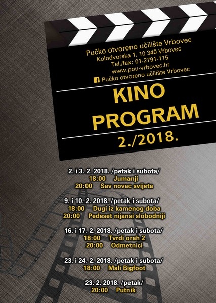Pred nama je novi kino mjesec u kojem nastavljamo igrati filmske hitove za djecu i odrasle. Filmske projekcije bit će u 18:00 i 20:00 sati petkom i subotom. Gledat ćemo Jumanji te crtiće Dugi iz kamenog doba, Tvrd orah 2 i Mali Bigfoot.