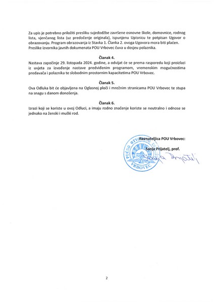 Pismena se zaprimaju na e-mail: tajnistvo@pou-vrbovec.hr
