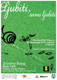 Najmlađa publika će u Noći kazališta od 17:00 sati pogledati predstavu za djecu Ljubiti, samo ljubiti Teatra Poco Loco. Riječ je o romantičnoj komediji za djecu i radoznale odrasle koja govori o ljubavi i zaljubljivanju – i kako smo spremni učiniti sve kada smo zaljubljeni, katkad čak i previše. Naš zaljubljeni junak je pravi pravcati Puž koji kroz niz situacija saznaje da ne treba postati junak, heroj, kralj, princ, sportaš ili bar ministar – kako bi osvojio srce djevojčice Ružice. Jedino što treba je – spoznati da je baš onakav kakav je – jedinstven i zato Ružici najdraži! Predstava Ljubiti, samo ljubiti inspirirana je pričama i dramskim tekstovima Zvonimira Baloga koje govore o odrastanju, vjeri u sebe i samopoštovanju, hrabrosti i odlučnosti u nakani da postaneš onakav čovjek kakav želiš biti.