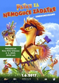 U našem kinu pogledajte sutra, u subotu 4. svibnja 2019. od 18:00 sati animirani film Patke za nemoguće zadatke. Na malom otoku izgubljenom u dalekoj Kini, miran život mandarinskih pataka iznenada se pretvori u veliki kaos kad vojska divljih pataka, koje su krenule na krstarenje do Havaja, slučajno završi na njihovom otoku. Što je dalje bilo, saznajte sami.