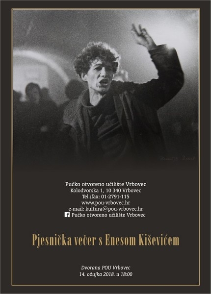 U srijedu, 14. ožujka 2018. u 18:00 sati u dvorani Pučkog otvorenog učilišta Vrbovec gostuje hrvatski književnik i dramski umjetnik Enes Kišević. U dugogodišnjoj bogatoj karijeri ostvario je niz zapaženih uloga na kazališnim daskama, filmu i televiziji te u radiodramama. Napisao je 24 knjige poezije i to: Lampa u prozoru, Jutarnja molitva, Sijeda djeca, Svjetlost je Tvoja sjena, Samo s Tobom ja sam ja, 101 vino od vina, Voda je moja Mati, Jutarnji mrak, Iza naličja... Član je Hrvatskog društva pisaca, Hrvatskog društva dramskih umjetnika i Hrvatskog haiku društva. Pjesme su mu prevedene na dvadesetak stranih jezika, a zastupljen je i u mnogim antologijama te čitankama. Prijateljevao je s pokojnim Dragutinom Persolijem, Vrbovčaninom koji je svom gradu darovao bistu Marije Jurić Zagorke. Persolijeva obitelj donirala je našoj Muzejskoj zborci vrijedne predmete iz njegove kolekcionarske ostavštine.