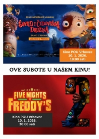 Od 20:00 sati pogledajte horor Pet noći kod Freddya 2. Napominjemo da je dobna granica za gledanje ovoga filma 15 godina. Karte se mogu kupiti u pretprodaji ili na blagajni kina u subotu od 17:00 sati.