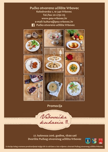 U subotu, 27. kolovoza 2016. godine bit će predstavljena knjiga recepata "Vrbovečka kuharica II." u izdanju Pučkog otvorenog učilišta Vrbovec. Knjiga izlazi u biblioteci Vrbovečka baština kao deveta knjiga, a donosi 113 recepata u 9 poglavlja na 256 stranica. Jela su pripremile 73 članice udruga žena s vrbovečkog područja koje, kao čuvarice gastronomske baštine, već godinama sudjeluju na turističko-kulinarskoj manifestaciji Kaj su jeli naši stari. U Vrbovečkoj kuharici mogu se naći recepti za juhe i čušpajze, glavna jela, kolače, priloge, salate, sosove, zimnicu te jela koja se mogu spremiti u kratkom roku.