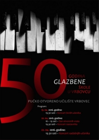 Niz koncerata koji će se održati u Dvorani Pučkog otvorenog učilišta Vrbovec započinje Koncertom nekadašnjih učenika glazbene škole u Vrbovcu u utorak, 19. travnja u 19:30 sati. Nastavlja se Koncertom nastavnika i profesora glazbene škole u Vrbovcu u srijedu, 20. travnja 2016. u isto vrijeme. Ciklus koncerata u povodu obilježavanja 50. godišnjice djelovanja glazbne škole u Vrbovcu završava u petak, 22. travnja 2016. u 19:30 koncertom učenika Glazbenog odjela II. OŠ Vrbovec. U lipnju će, u sklopu obilježavanja Dana grada Vrbovca, biti promovirana monografija "Glazbena škola u Vrbovcu" autora Sanje Prijatelj i Franje Simića.
