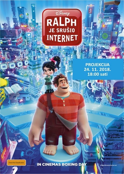 Ove subote, 24. studenoga 2018. u 18:00 sati pogledajte animirani film Ralph ruši Internet o antijunaku video igrice Ralphu i njegovoj partnerici Vanellopi von Schweetz koji navigiraju neistraženim, prostranim i dinamičnim svijetom Interneta u potrazi za zamjenskim dijelom kako bi spasili Vanellopinu video igricu.