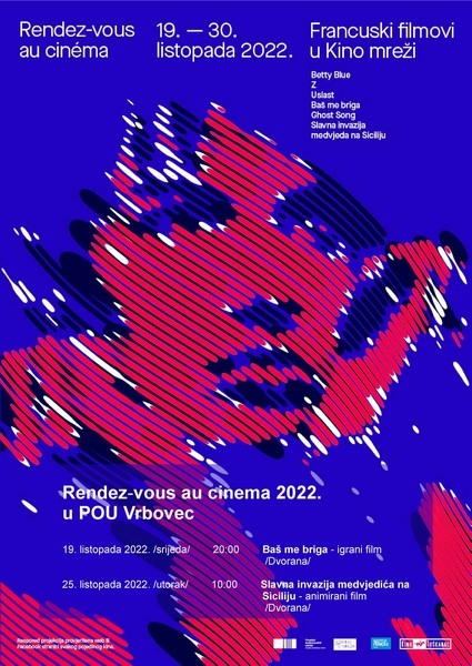 Kino mreža, Hrvatski audiovizualni centar i Francuski institut i ove godine nude besplatno gledanje francuskih filmova u sklopu programa Rendez-vous au cinéma. U našem kinu pogledajte igrani film Baš me briga u srijedu, 19. listopada 2022. od 20:00 sati, a 25. listopada 2022. u 10:00 sati prikazivat ćemo crtić Slavna invazija medvjedića na Siciliju.