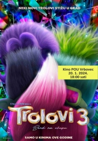 Sutra od 18:00 sati u našem kinu pogledajte sinkronizirani crtić Trolovi: bend na okupu. Poppy i Branch konačno su par. Kako se zbližavaju, Poppy otkriva da Branch ima tajnu prošlost. Nekada je bio dio njezinog omiljenog fenomena boybanda, BroZone, sa svoja četiri brata: Floydom, Johnom Doryjem, Spruceom, i Clayom. BroZone se raspao dok je Branch još bio beba, a Branch od tada nije vidio svoju braću. Ali kada Branchovog brata Floyda, zbog njegovog glazbenog talenta otme par opakih zlikovaca, Banch i Poppy kreću na teško i emotivno putovanje kako bi ponovno ujedinili drugu braću i spasili Floyda.
