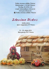 Ususret Uskrsu, najvećem kršćanskom blagdanu, u Maloj galeriji Pučkog otvorenog učilišta Vrbovec bit će otvorena izložba radova djece i odgajateljica Dječjeg vrtića Vrbovec pod nazivom Slavimo Uskrs. Izložbu odlikuje razigranost motiva i materijala svojstvena djeci koja su pod mentorstvom svojih teta u zajedništvu ove izložbe dočarali simboliku Uskrsa.