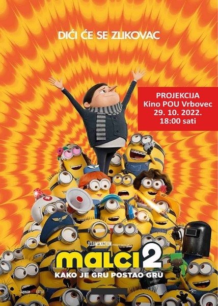 U našem kinu sutra u subotu, 29. listopada 2022. godine od 18:00 sati pogledajte animirani film Malci 2: Kako je Gru postao Gru. U drugom nastavku filma o Malcima pratimo 12-godišnjeg Grua koji je na tragu da postane najveći zlikovac svih vremena, a na tom putu svesrdno mu pomažu mali žuti prijatelji.