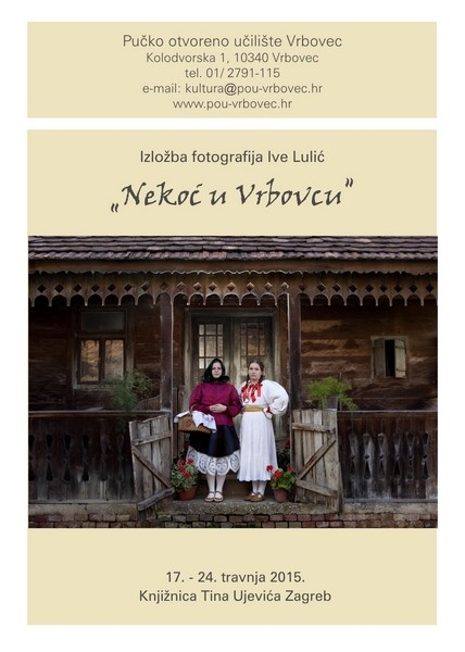 Sutra se u Knjižnici Tina Ujevića otvara izložba fotografija Ive Lulić "Nekoć u Vrbovcu" nastala na ideju Pučkog otvorenog učilišta Vrbovec koji je i vlasnik autorskih prava cijeloga projekta. Fotografije su nastale na vrbovečkim lokalitetima, a prikazuju tipične životne situacije naših nekadašnjih stanovnika. Prikazan je bračni par za doručkom, otac kako oštri kolje, majka kako roza nošnju, djeca koja se igraju na cvjetnoj livadi, snaha koja kopa vinograd, mladenci, djevojka koja pegla rublje valjačom, običaj čehanja perja... Fotografije su nastale 2014. godine u povodu 770. rođendana Grada Vrbovca.