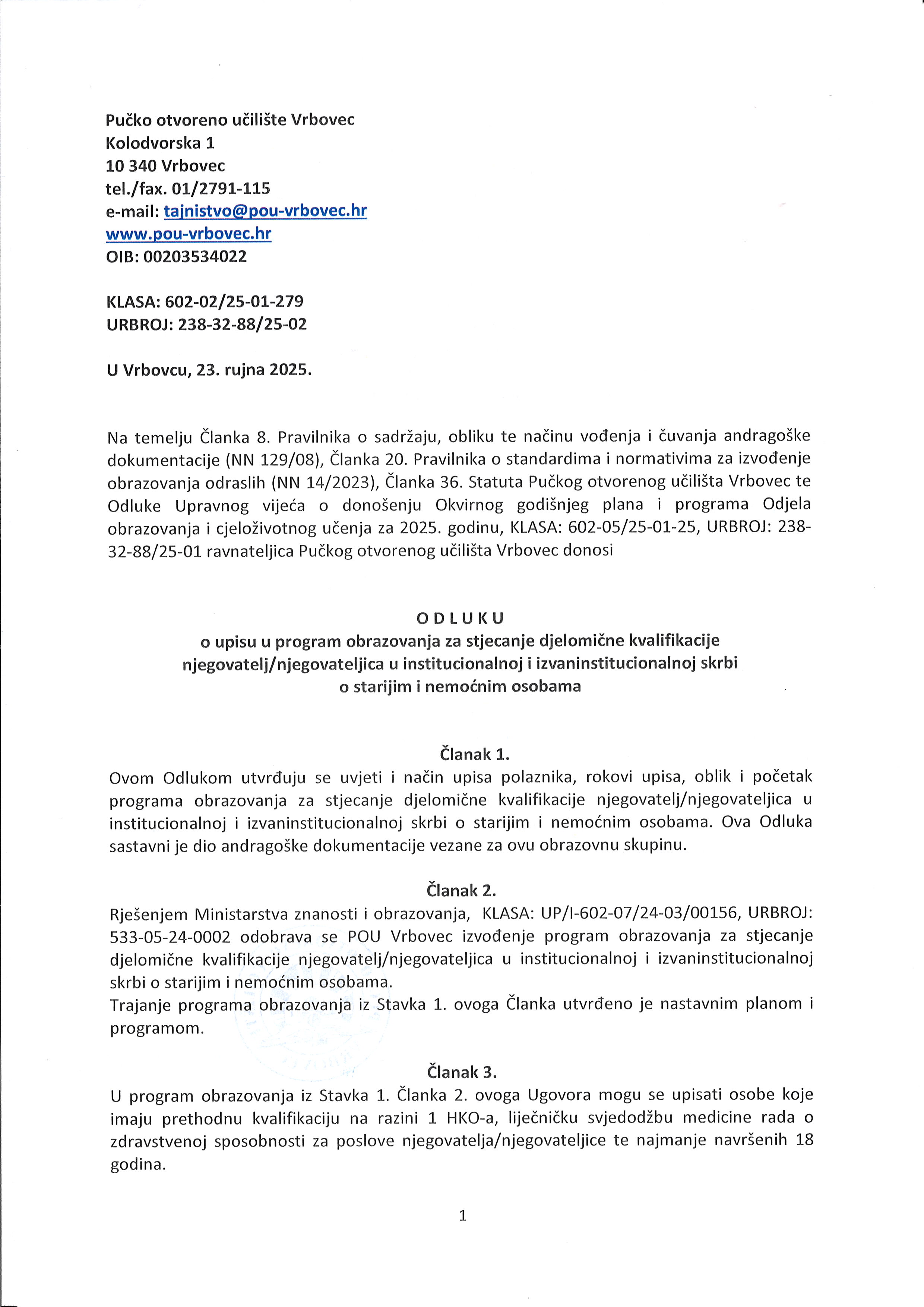 Predavanja za polaznike programa obrazovanja za njegovatelje/njegovateljice u nastavi započinju u četvrtak, 25. rujna 2025. godine od 17:00 sati u učionici 3 na prvom katu naše zgrade.