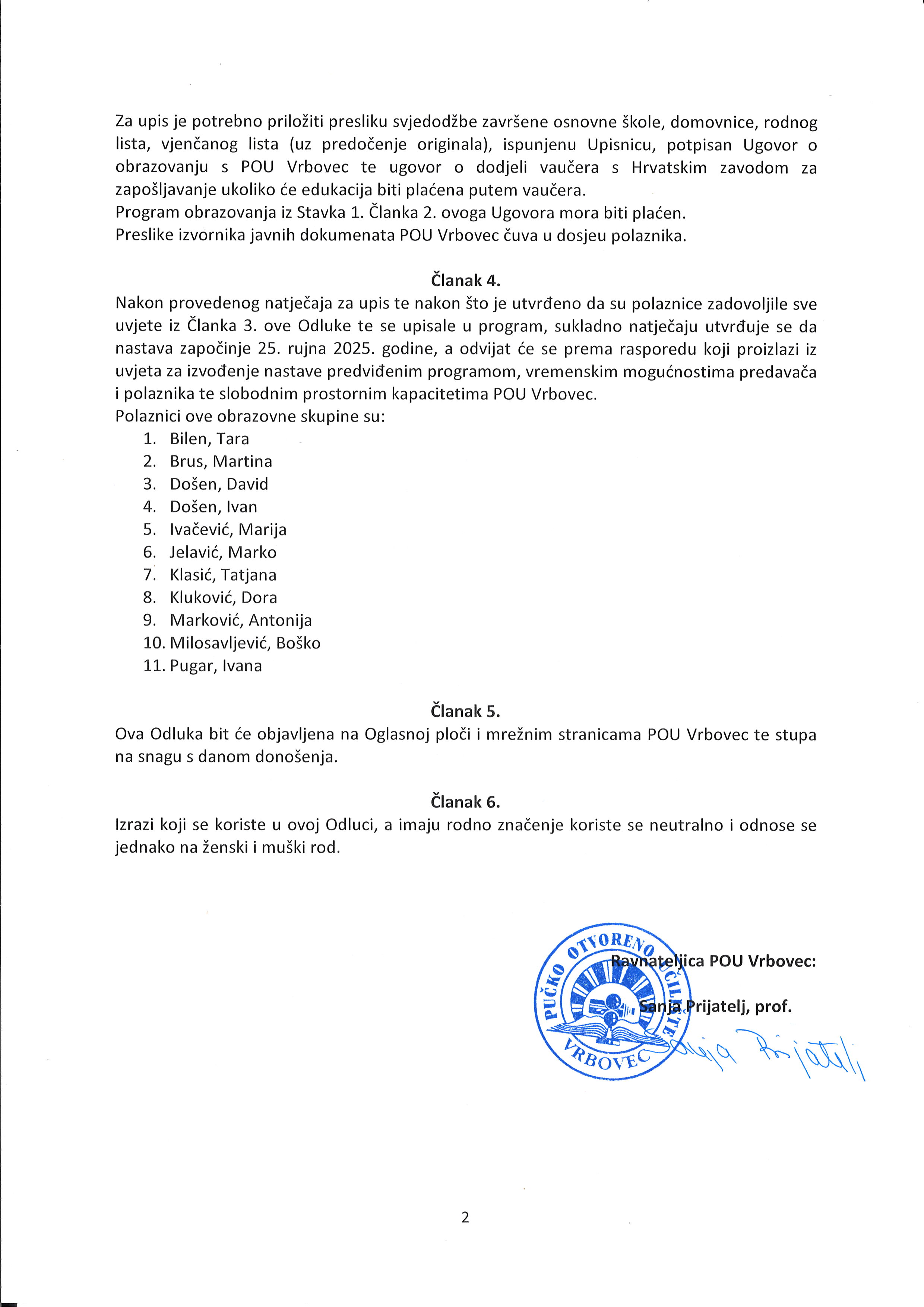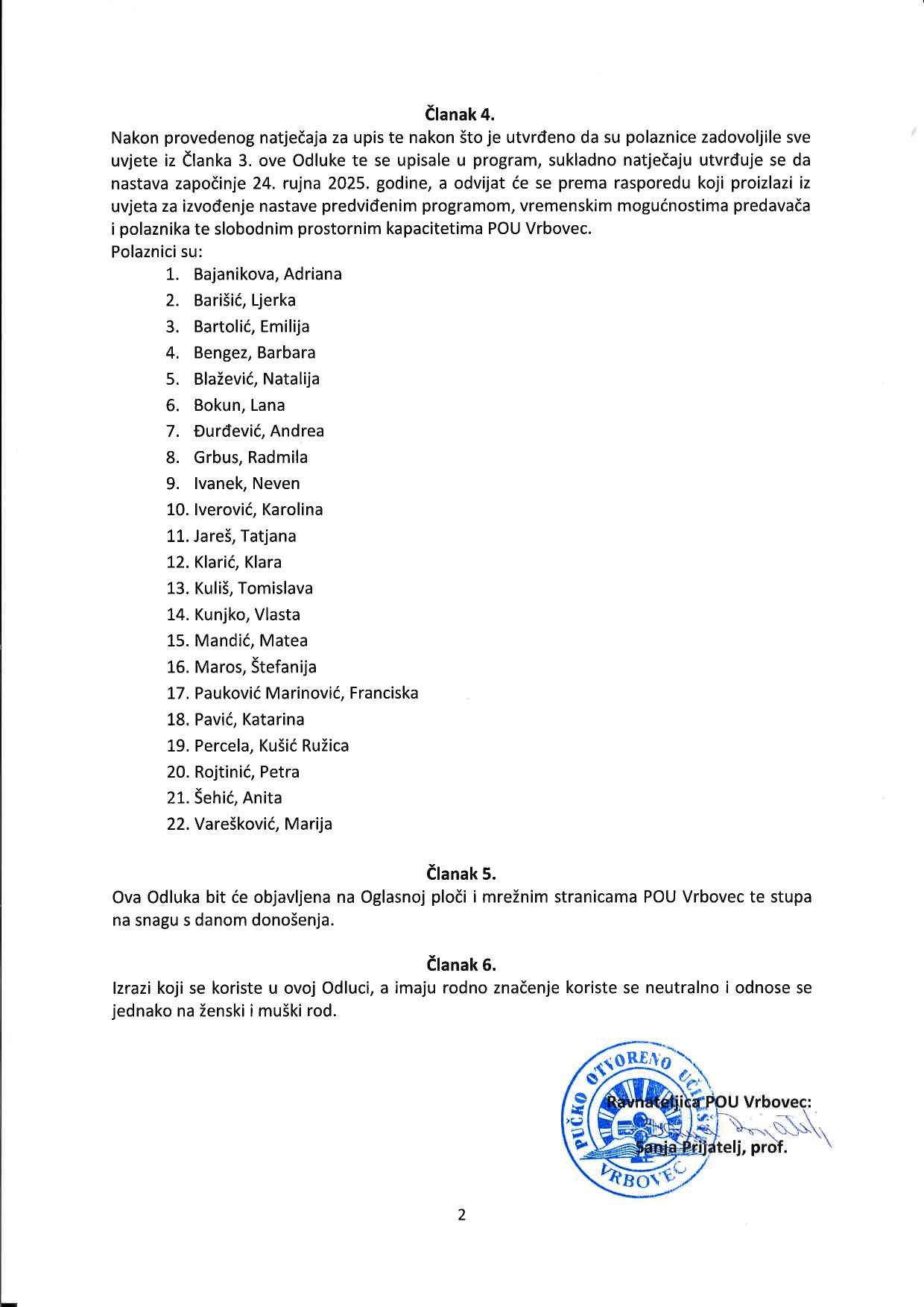 Pismena se zaprimaju na e-mail: tajnistvo@pou-vrbovec.hr
