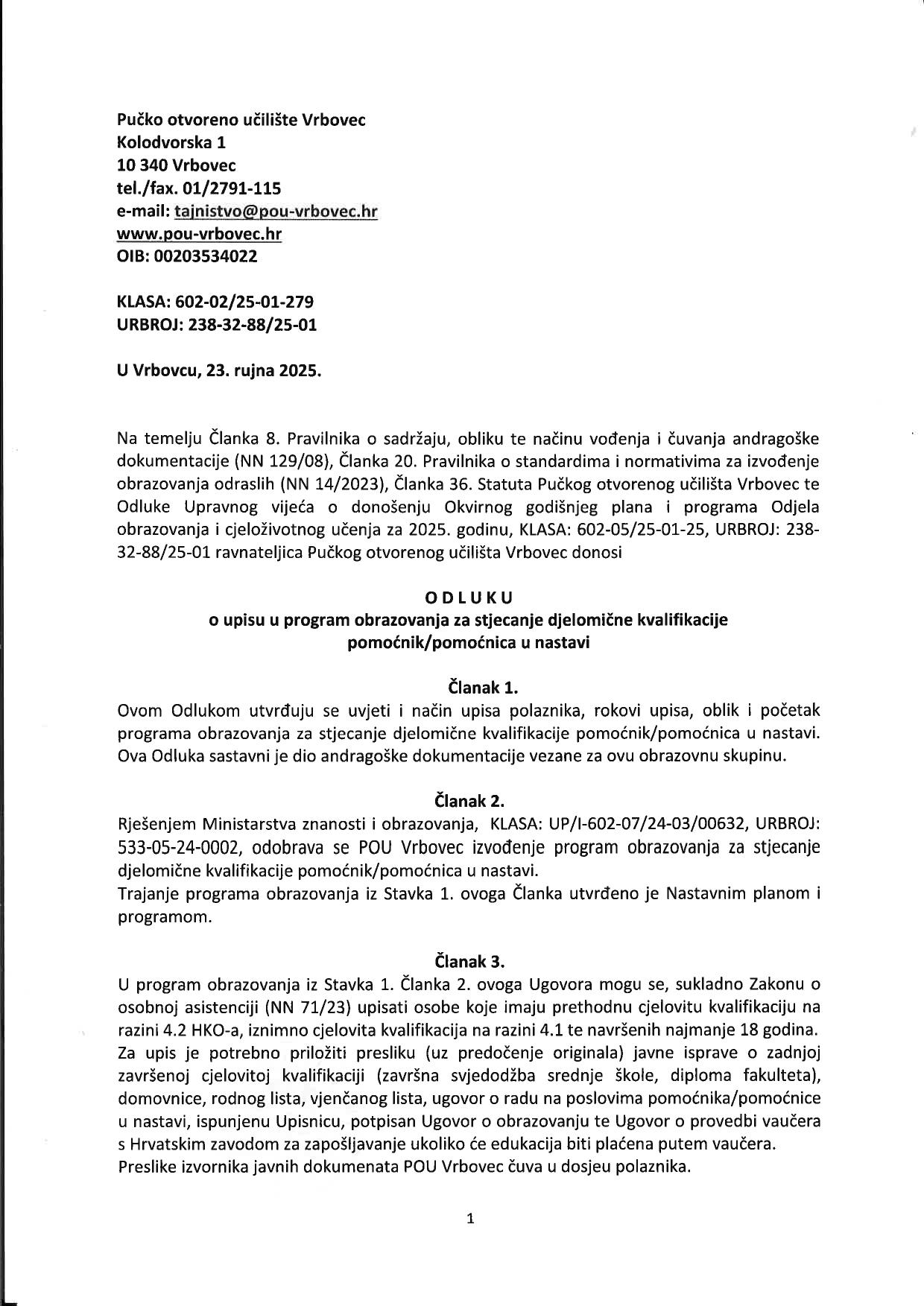 Završeni su upisi u programe obrazovanja POU Vrbovec te započinjemo s predavanjima. Predavanja za polaznike programa obrazovanja za pomoćnike/pomoćnice u nastavi započinju sutra, 24. rujna 2025. godine od 18:00 sati u učionici 3 na prvom katu naše zgrade.