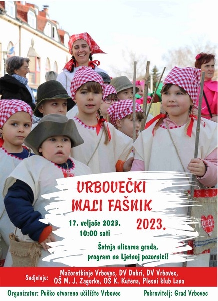 Sutra u 10:00 sati započet će Vrbovečki mali Fašnik. U Fašniku sudjeluju vrbovečke mažoretkinje, Dječji vrtić Vrbovec, Dječji vrtić Dobri, OŠ Krunoslava Kutena, OŠ Marije Jurić Zagorke i Plesni klub Lana. Voditelji programa su glumica Mirna Ostrošić kao Teta NeMirna i glumac Igor Baksa kao Tata Slikovnica. Povorka maskiranih vrtićanaca i učenika kreće od OŠ Krunoslava Kutena, Ulicom Brdo te Ulicom poginulih branitelja prema centru. Krajnji je cilj Ljetna pozornica gdje će se maškare predstaviti kraćim programom.